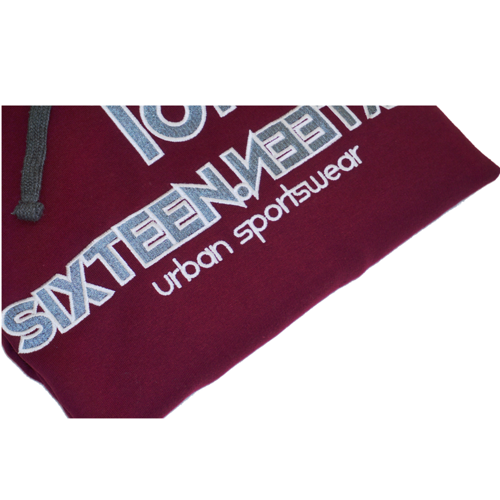 Der 1616 Varsity Hoodie bietet eine bequeme Passform aus 80 % Baumwolle und 20 % Polyester. Die doppellagige Kapuze überzeugt mit einem kontrastfarbenen Innenfutter und flachen Zugbändern in passender Kontrastfarbe. Praktische Kängurutasche, gerippte Ärmelbündchen und Saum sowie ein gebürstetes Innenvlies sorgen für angenehmen Tragekomfort. Das Obermaterial besteht zu 100 % aus Baumwolle. Der Hoodie hat einen regulären Schnitt und ist mit einer großen, weißen-grauen Logostickerei von 1616 Urban Sportswear veredelt.