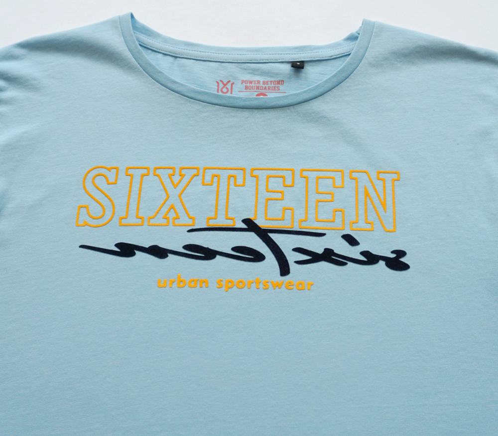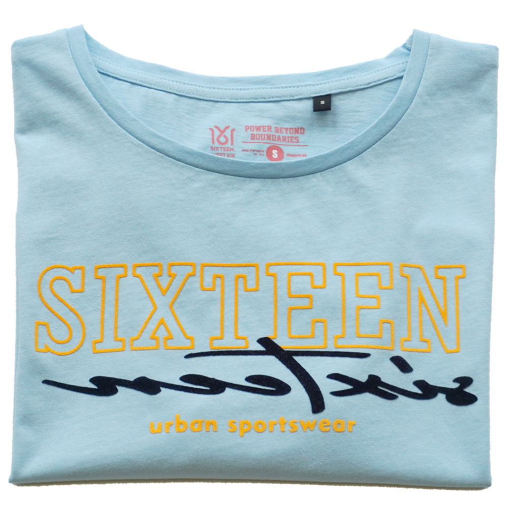 Dieses kurzärmlige Crop-Top T-Shirt in Himmelblau überzeugt durch einen leuchtenden, zweifarbigen Druck auf der Vorderseite. Es besteht aus 100 % Baumwolle und ist nach Öko-Tex Standard 100 zertifiziert, was für hohe Qualität und Nachhaltigkeit sorgt.